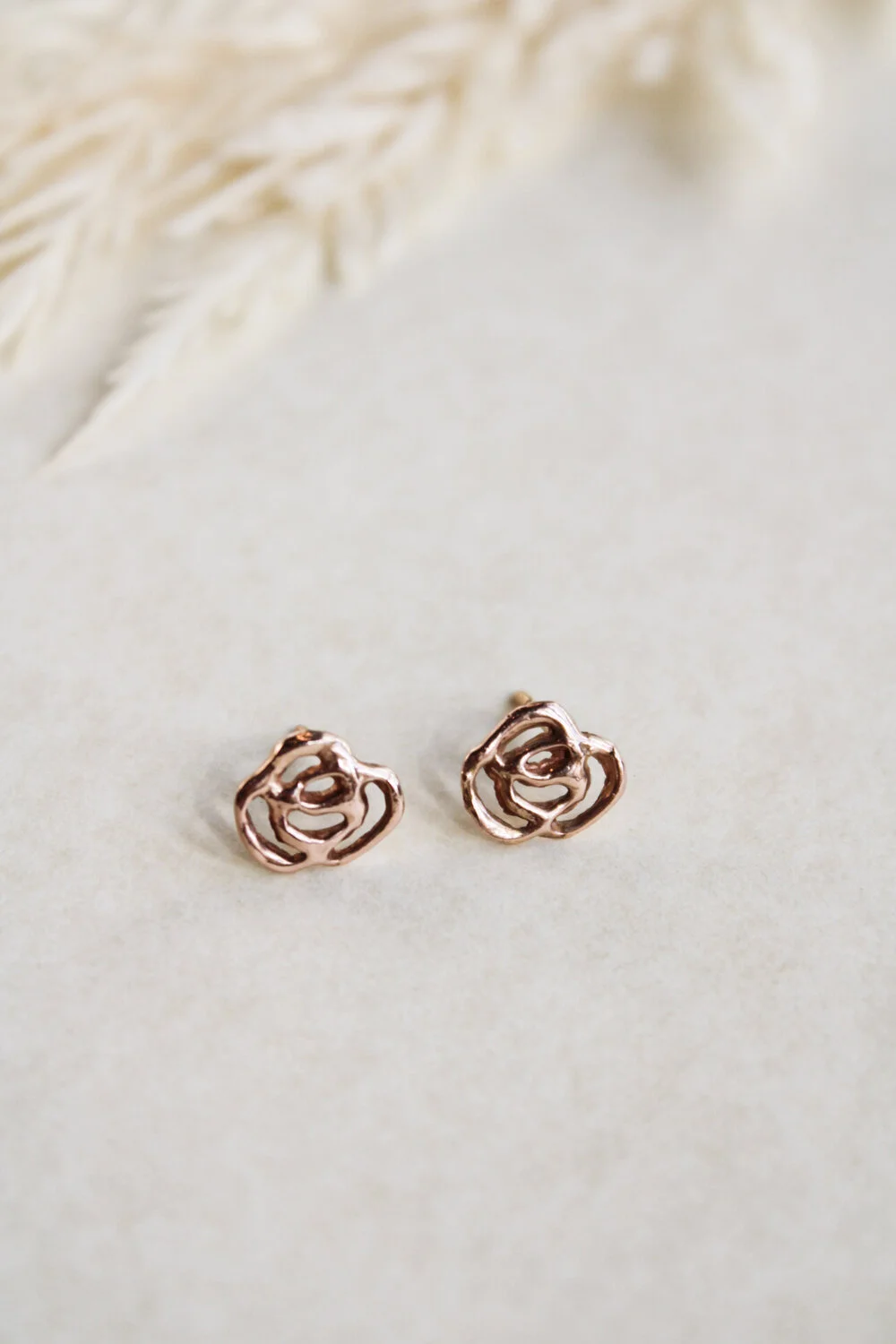Made in 14k solid rose gold earrings post with ear nut.